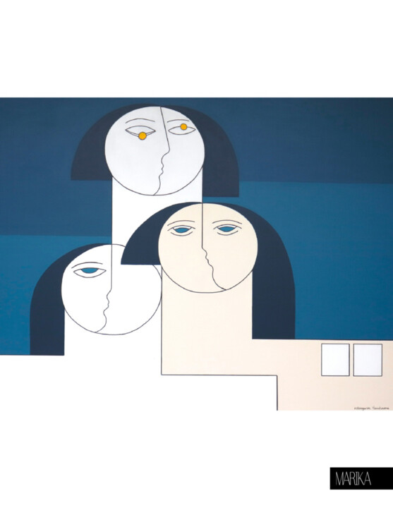Blue-Toned Composition – three figures structured through symmetry, contour, and flat colour planes.